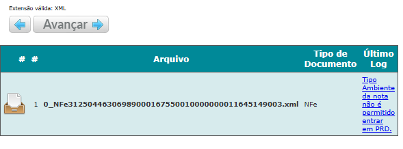 Agora, o Ábax valida a tag <tpAmb> dentro do XML. Caso o ambiente for PRD ele verifica se o conteúdo da tag é diferente de 1, se for, ele bloqueia a entrada da nota e retorna a mensagem “Tipo Ambiente da nota não é permitido entrar em PRD.”