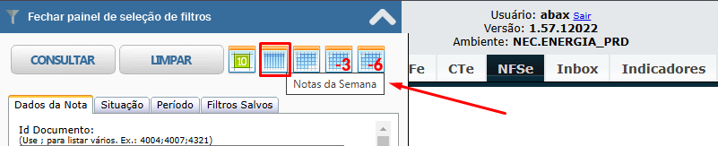 As legendas foram adicionadas aos botões dos filtros de data dos módulos de CTe e NFSe, da mesma forma como já estão implementadas no NFe.