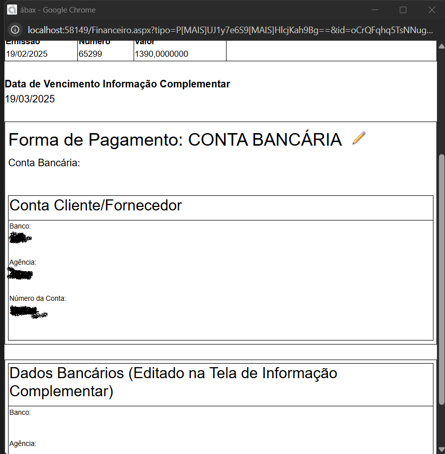 Foi realizada a correção de banco de dados para exibir corretamente o CNPJ do fornecedor na tela de Financeiro. Após a correção, os dados estão sendo exibidos corretamente.