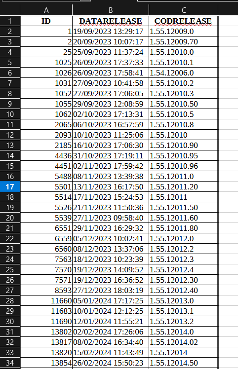 Foi realizado um ajuste para melhorar a geração do relatório de release. A query responsável pela busca dos dados do histórico foi otimizada, agrupando as informações pelo número da versão.