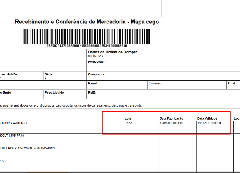 Melhorias na tela do Mapa Cego. Agora, informamos, também, o Lote, Data de Validade e Data de Fabricação.