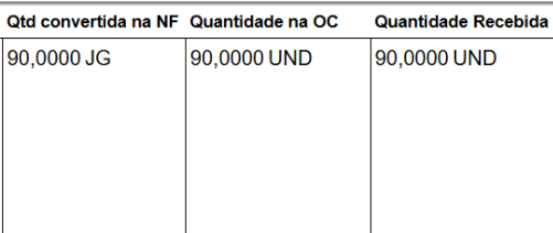 Foi feita uma correção na exibição da unidade de medida nas telas de Contagem e 3WayMatch. Além de exibir corretamente a unidade ao lado das quantidades, foi criada a tag “VALIDA_UNIDADE_DE_MEDIDA” que, em casos onde há uso de fator de conversão de unidade de medida, na coluna da quantidade da nota é exibida a unidade de medida da Ordem de Compra.